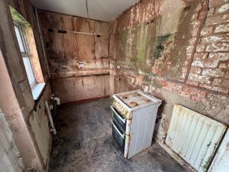A two bedroomed mid terraced house in need of modernisation. Entrance hall, lounge/diner, kitchen.