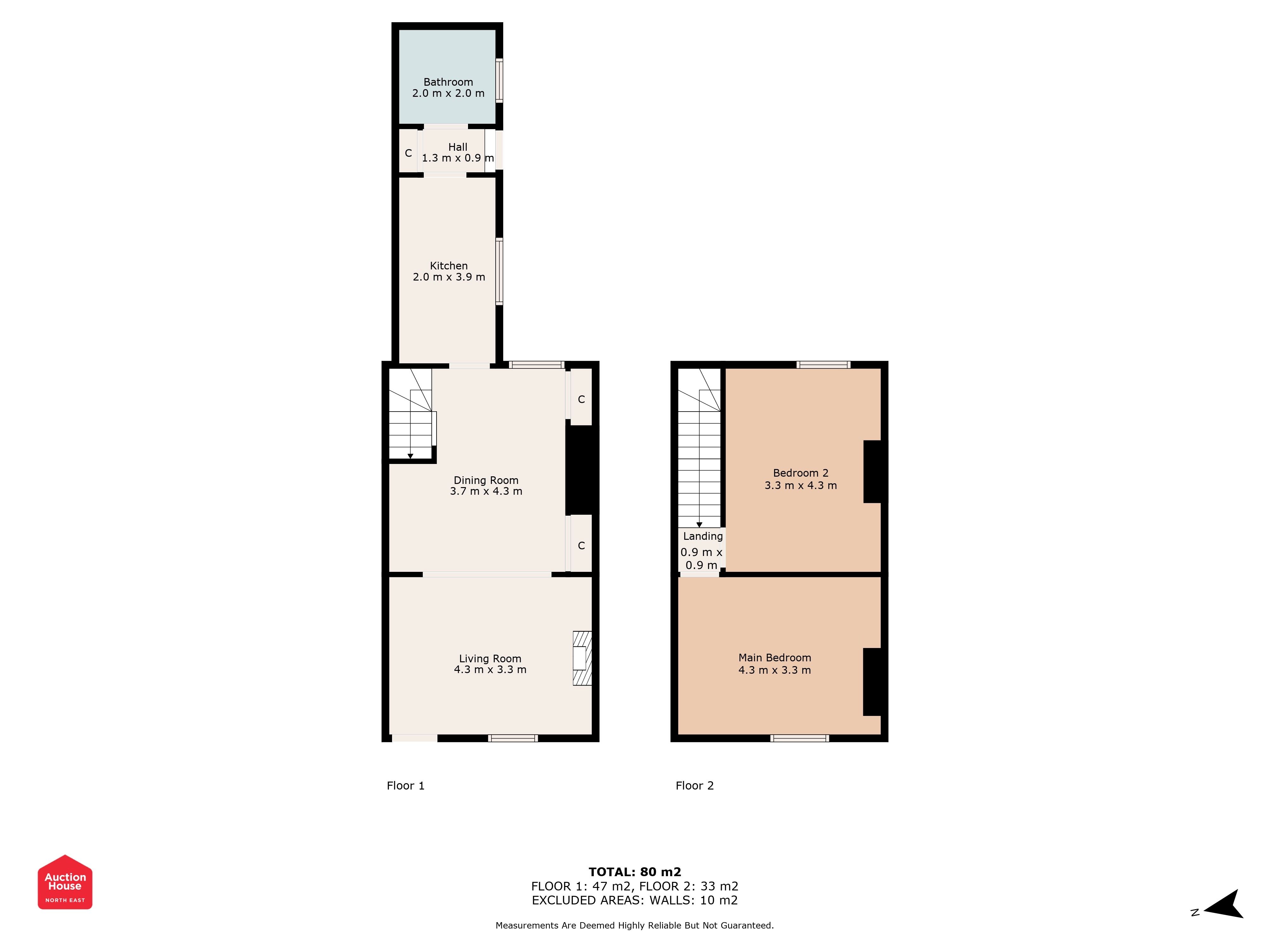 -First Floor: Two generous double bedrooms.
