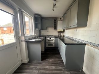 -Fitted Kitchen — Practical L-shaped layout with plenty of cupboard and worktop space, rear access to the garden.
