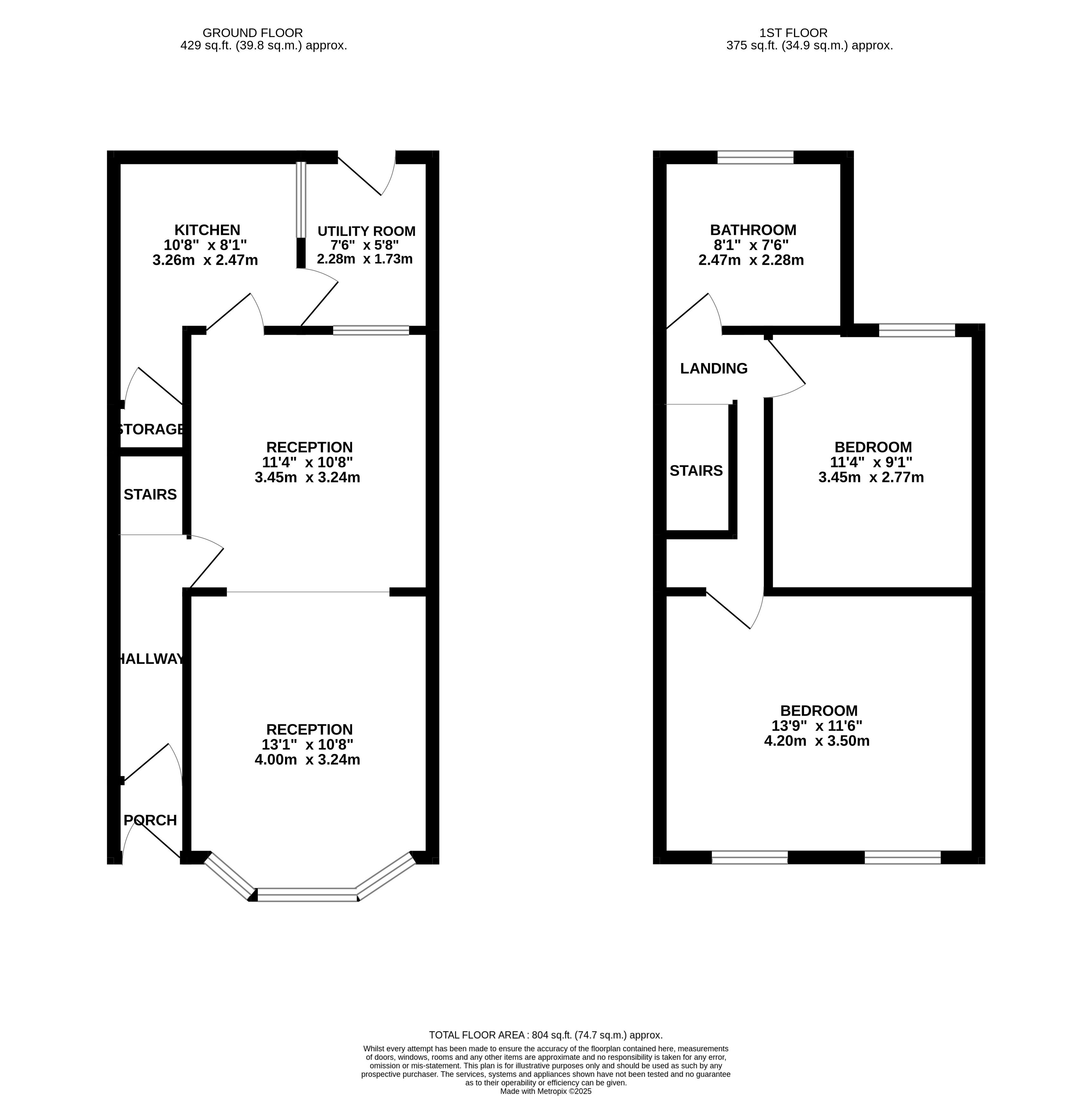 -First Floor: Two well-proportioned bedrooms and a family bathroom.