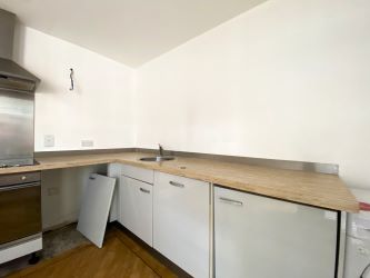The kitchen has a variety of wall and base units, alongside the added benefit of a small balcony space, enabling further views of the canal.