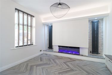 The ground floor offers a welcoming entrance hall, WC, and two reception rooms, ideal for family living or home working. A stunning, recently installed kitchen features integrated appliances, ample storage, and a striking bespoke radiator feature wall. Upstairs, there are two spacious double bedrooms, a modern bathroom with elegant tiling and high-quality fixtures, and an additional versatile room perfect as an office or nursery. The second floor reveals a superbly finished loft room, offering great flexibility as a master suite, games room, or home office.