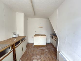 Comprising of a ground floor kitchen with stairs leading to a landing with access to two bedrooms or one bedroom and a lounge, a bathroom, and storage cupboard.