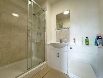 -Contemporary shower room (approx. 2.6m x 1.5m) with WC and vanity basin