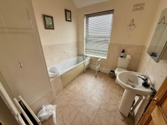 Available for auction is this two bed mid-terraced house offering practical living space across two floors. The ground floor features a spacious lounge with understairs storage. To the rear is a well-sized kitchen with direct access to the back garden and another under stairs cupboard offering useful storage.