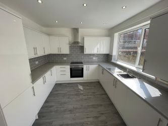 🍳 Contemporary Kitchen – Bright and airy with high-gloss cabinets, integrated oven & hob, tiled splashbacks, and generous worktop space.