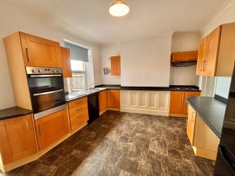 Dining Kitchen - 4.54 x 3.56 with a range of wood fronted units, built in double oven, dishwasher space, sink , coving , gas hob and extractor.