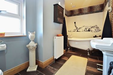 Located centrally, the original farmhouse is a unique detached residence with ample parking and surrounding gardens with external patio including hot tub. Entering through the side elevation into the breakfast kitchen, this well presented kitchen features a contemporary range of wall and base storage units with a central island offering breakfast bar seating. A central snug reception room has stairs which rise to the first floor and leads into a stunning, open living/dining area with two sets of patio doors opening to the surrounding gardens.