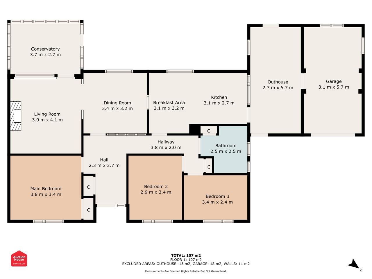Internally, the accommodation extends to approximately 107 sq. m. and briefly comprises: