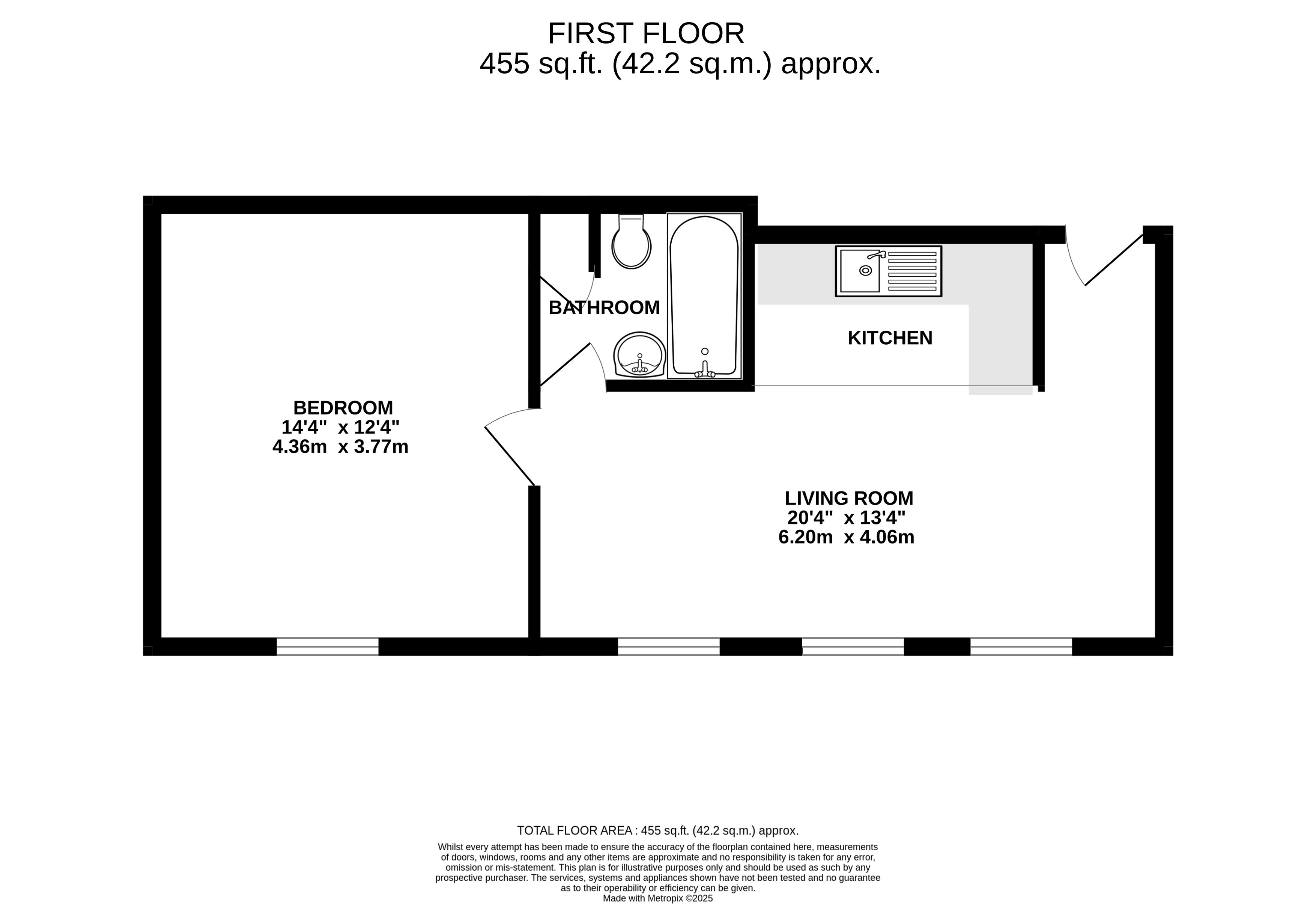 First Floor Apartment Entry telephone system, open plan living room and kitchen, bedroom & bathroom