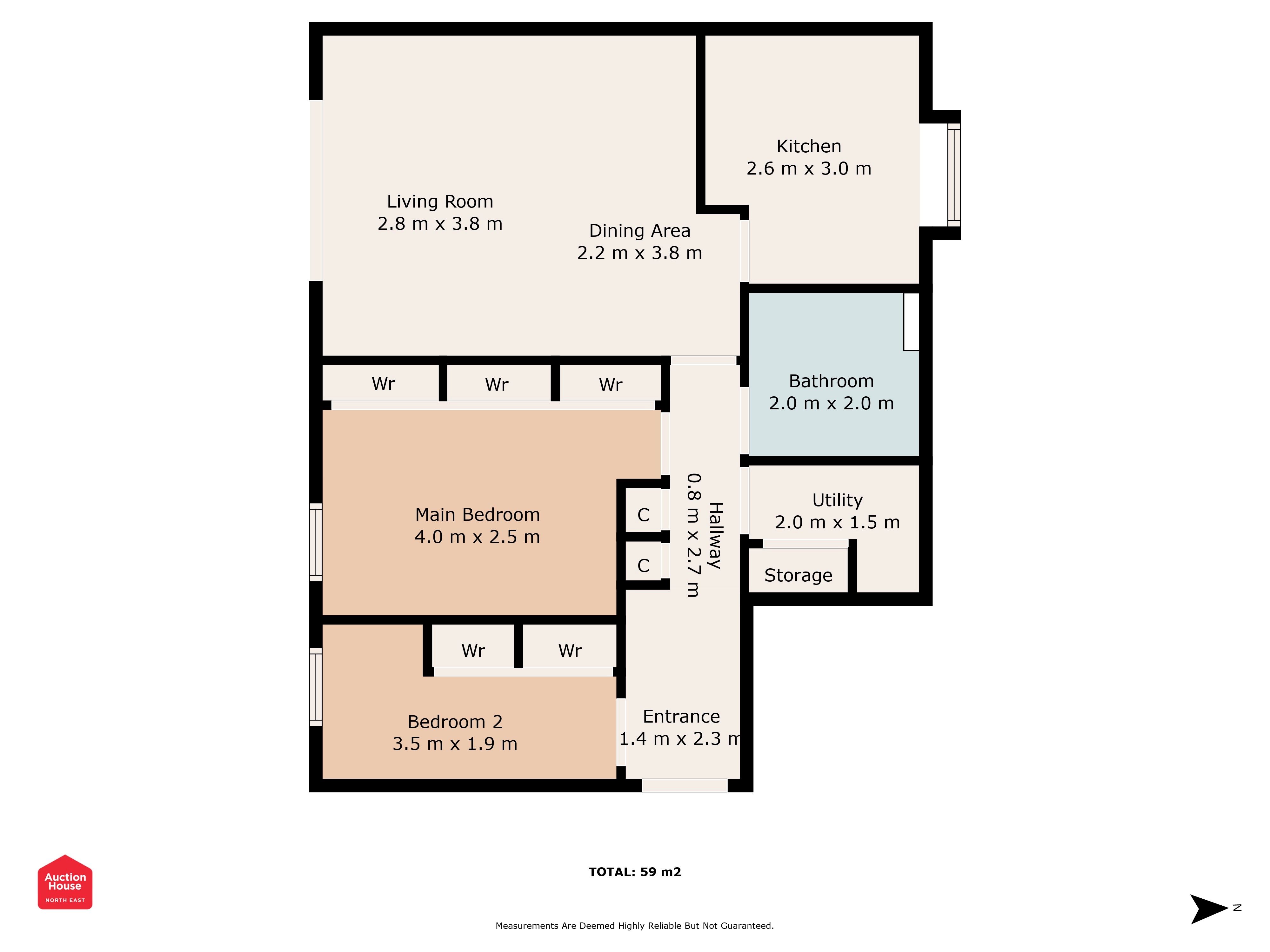 Offering approximately 59m² of living space, the accommodation briefly comprises: