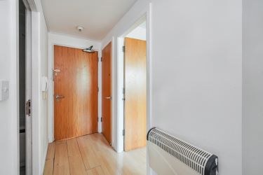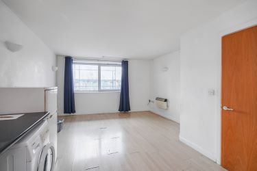The accommodation comprises an open-plan kitchen/living/dining area, double bedroom, and bathroom. The flat benefits from electric heating, double-glazed windows, and a secure entry system.