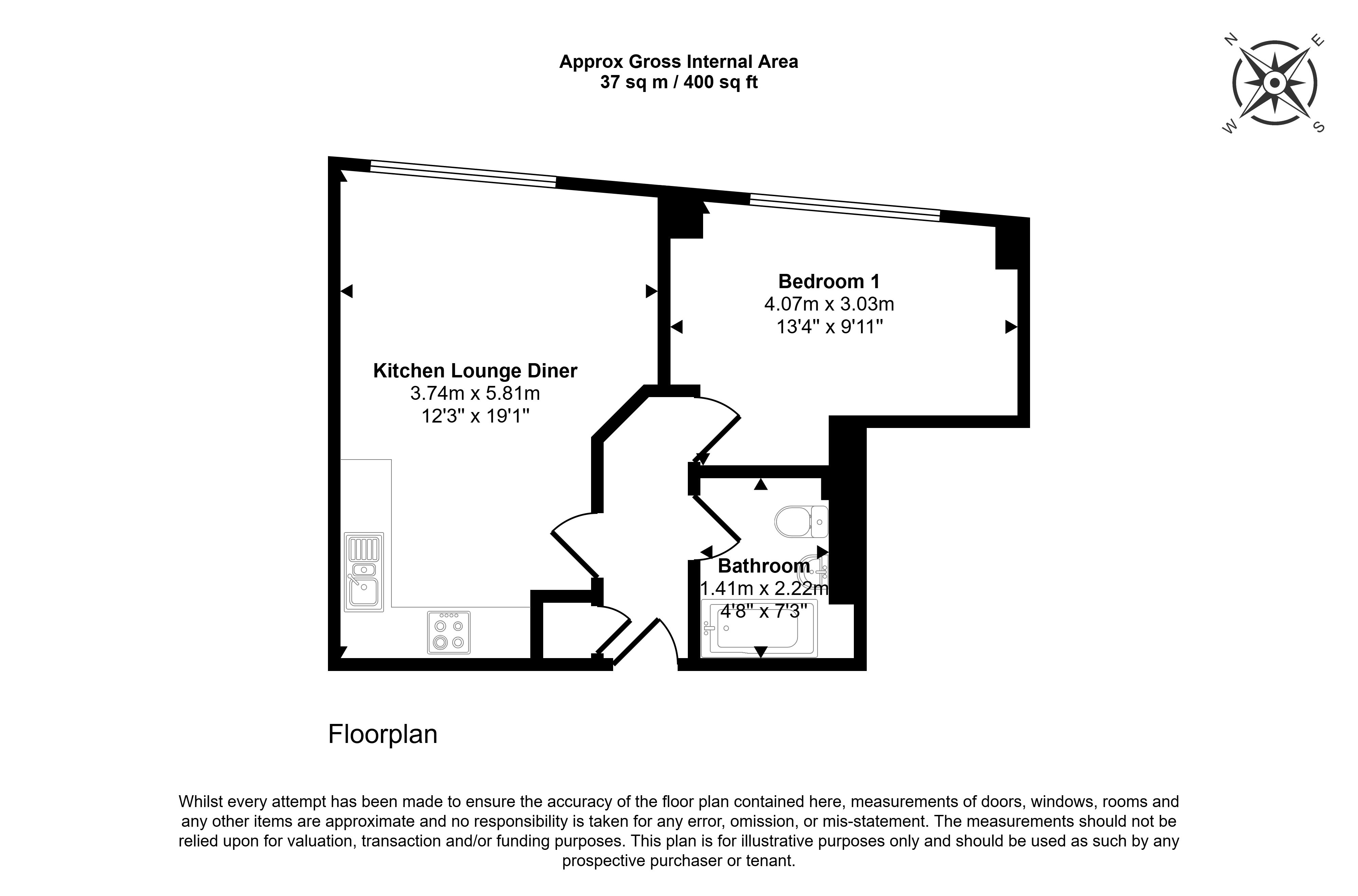 Total Floor Area: 37 sq. m (400 sq. ft)
