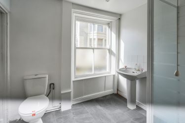 Upper Floors: A mix of bedrooms, bathrooms, and kitchens spread across three levels, many with large sash windows providing excellent natural light.