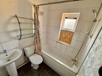 The property has gas heating, pvc windows in need of re-glazing, and in need of refurbishment throughout. The property benefits from dropped kerbs ready to create off road parking to the front and to the rear is a large uncultivated private garden