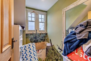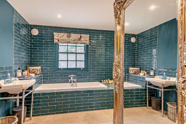 The vaulted, shaker style kitchen, is fitted with a custom made zinc island, American walnut work surfaces and a concrete Belfast sink. This versatile space has a large walk in pantry, an open plan view to both the front and back of the house and was designed for entertaining! There is zonal UFH throughout ground floor of property.