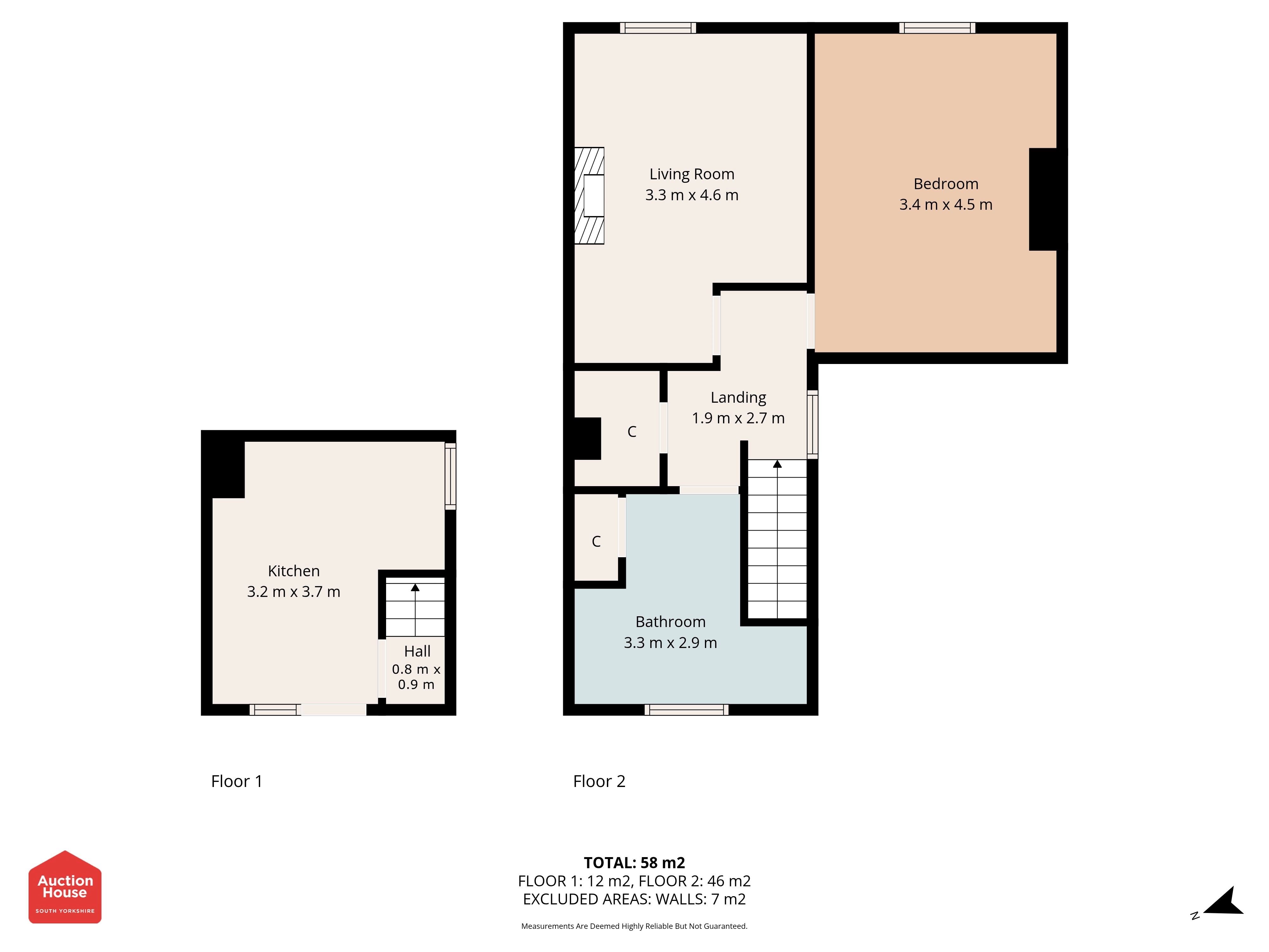 Comprising of a ground floor kitchen with stairs leading to a landing with access to two bedrooms or one bedroom and a lounge, a bathroom, and storage cupboard.