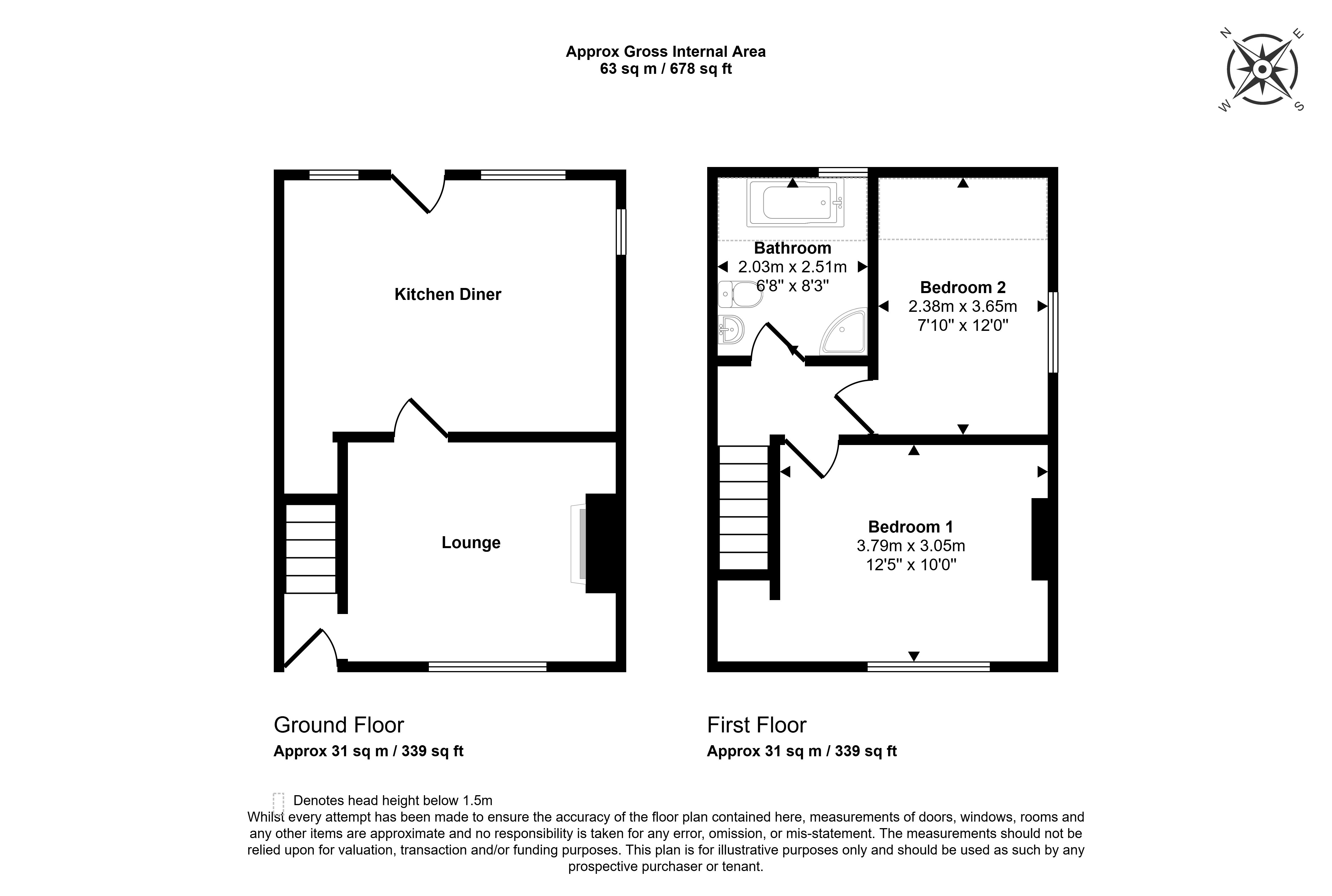 The property compromises of an Entrance Hall, a Living Room and a Kitchen to the ground floor. On the first floor are 2 Bedrooms and a Bathroom.