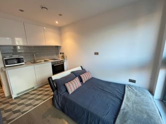 The property comprises an entrance hallway, modern fitted kitchen with integrated oven, hob, microwave and sink. The open-plan living/bedroom space benefits from floor-to-ceiling windows, neutral décor and room for sleeping, relaxing and working. A contemporary shower room completes the accommodation.