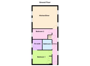 Hallway (7.22m x 1.07m), Kitchen/Diner (4.56m x 5.16m), Bedroom 1 (2.87m x 3.98m), En-suite (2.10m x 1.97m), Bedroom 2 (2.10m x 4.00m), Family bathroom (2.09m x 1.93m) and Hallway Storage (0.79m x 0.79m)
