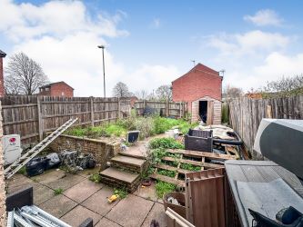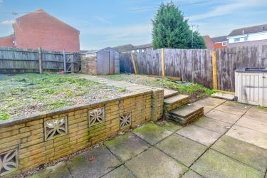 Enclosed rear garden with patio area and timber shed. On-street and communal parking to the front.