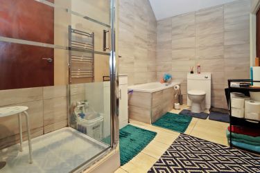 A hallway leads you through the rest of the home. The second bedroom is a comfortable double with space for additional storage. Further down the corridor, you'll find a spacious bathroom featuring both a bathtub and a separate shower, with the added benefit of dual access to the Master bedroom. The Master bedroom is located at the end of the hallway, offering privacy, generous proportions, and wardrobe space.