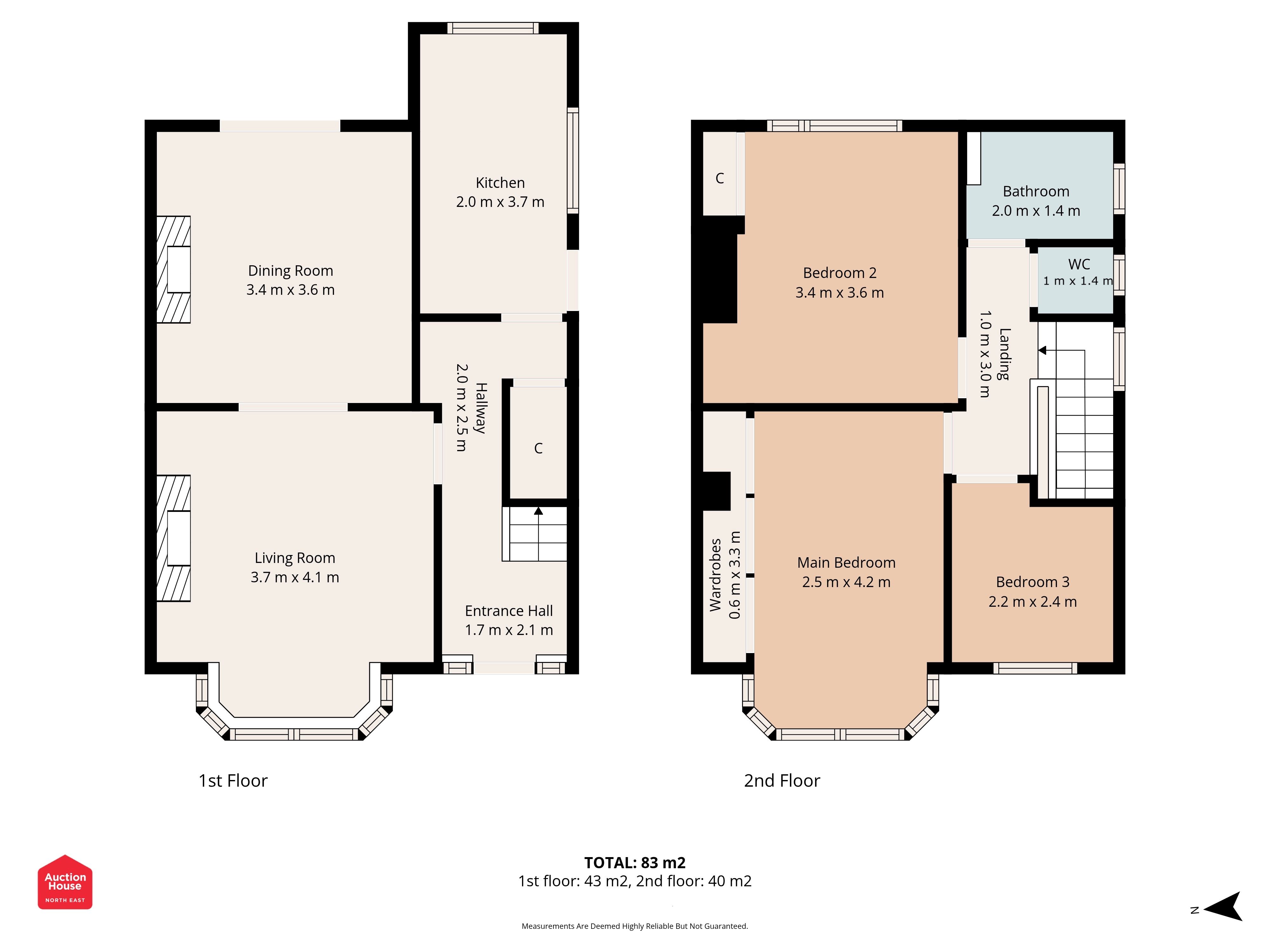 Gross internal area: 83 m² (1st floor 43 m², 2nd floor 40 m²)