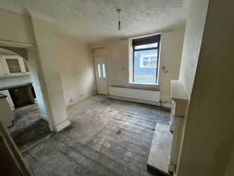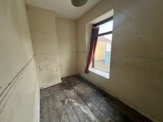 The accommodation is arranged over two floors and offers approximately 657 sq.ft (61 sq.m) of living space. The ground floor comprises a good-sized living room, a spacious kitchen, and access to the rear yard area. The first floor provides two bedrooms and a family bathroom. The property requires a full programme of renovation and upgrading, allowing buyers to add significant value.