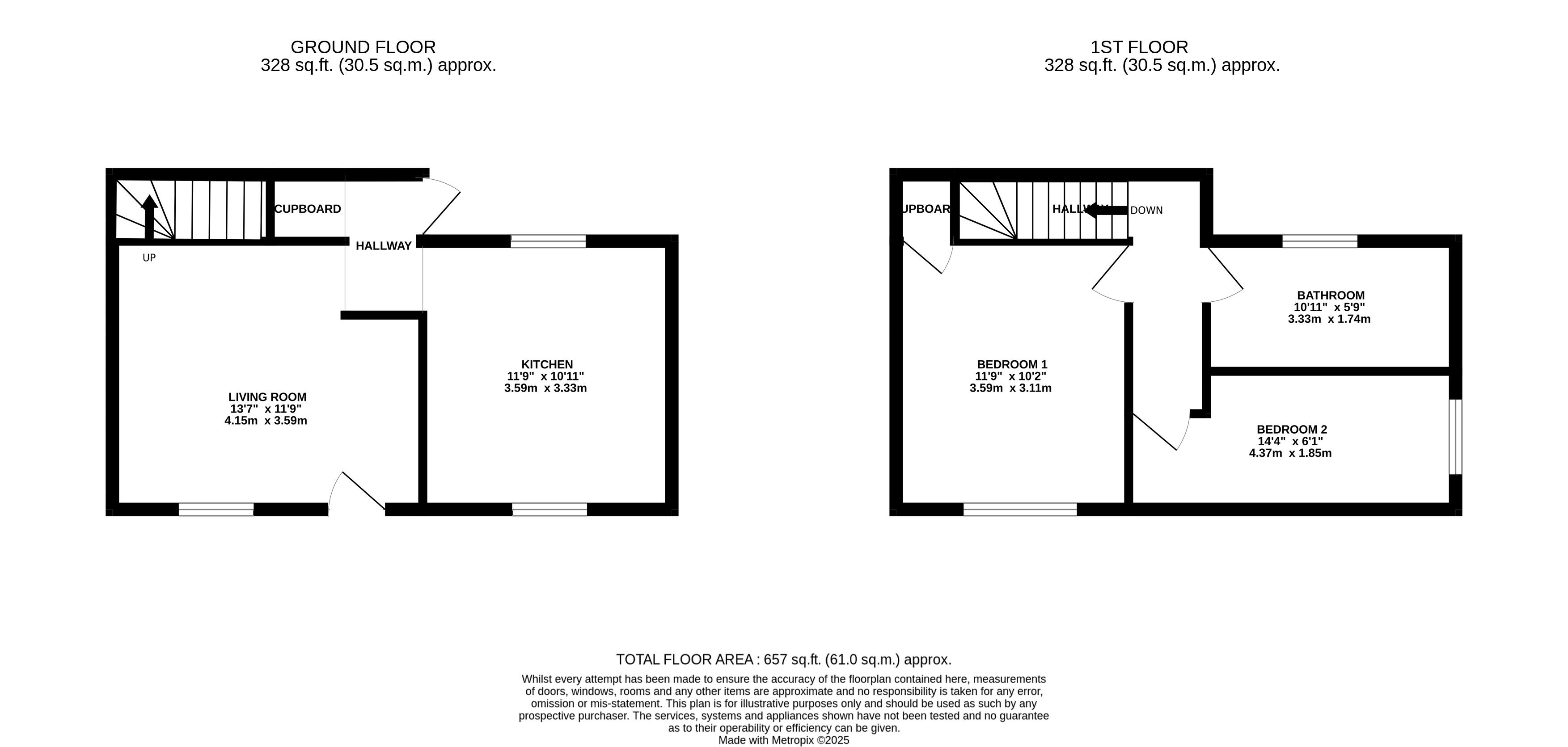 Total Floor Area: 657 sq.ft (61.0 sq.m) approx.