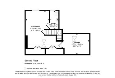 Second Floor Loft Room 3.25m x 5.13m, En suite 1.16m x 2.41m, Store Room 3.68m x 2.82m