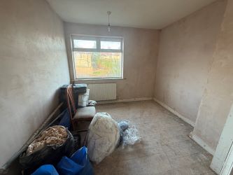 The accommodation currently comprises an entrance hall, a bay-fronted lounge, and a space for a kitchen area leading to the rear of the property. Upstairs, the landing provides access to three well-proportioned bedrooms and a bathroom (only with toilet currently). Externally, the property benefits from a front garden leading to a large rear garden.