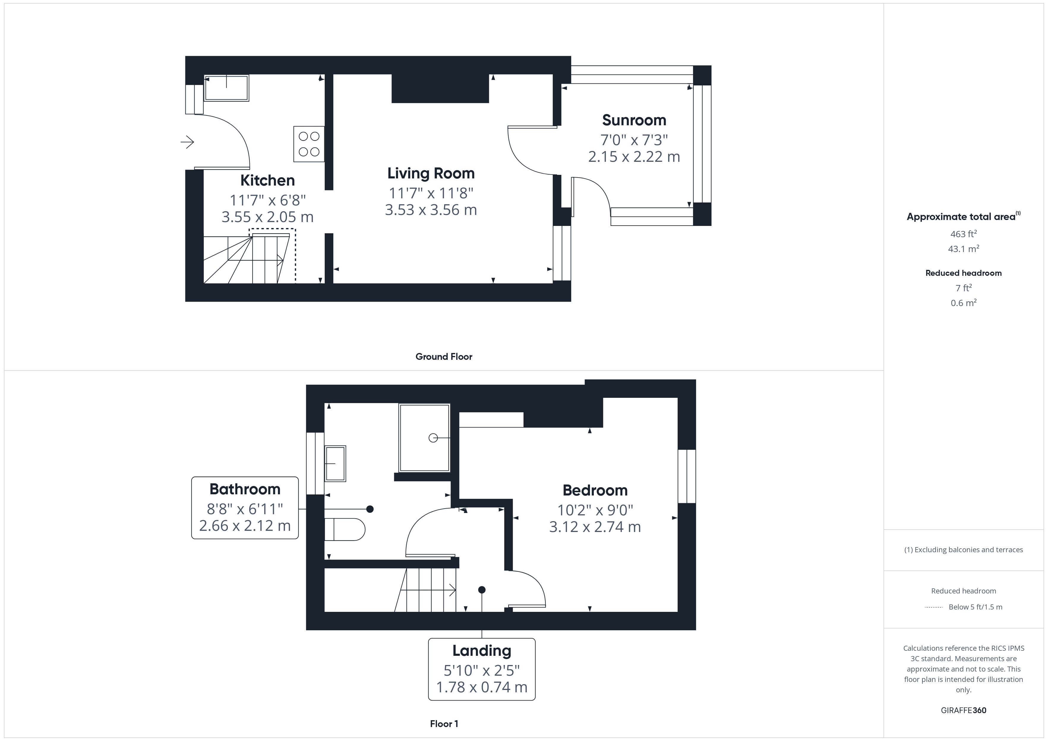 Sunroom - 7'0" x 7'3" (2.15m x 2.22m)