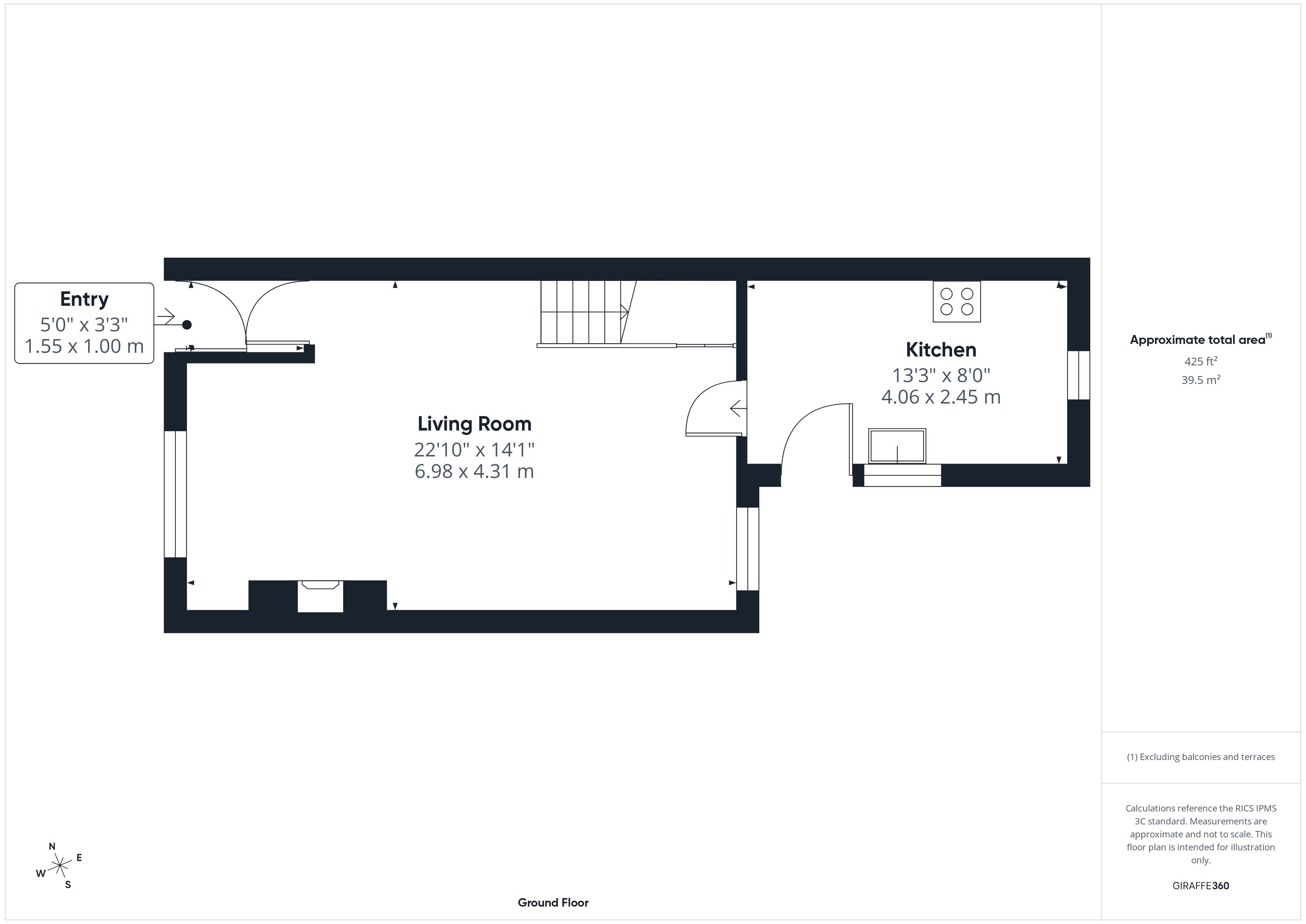 Entry - 5'0" x 3'3" (1.55m x 1.00m)