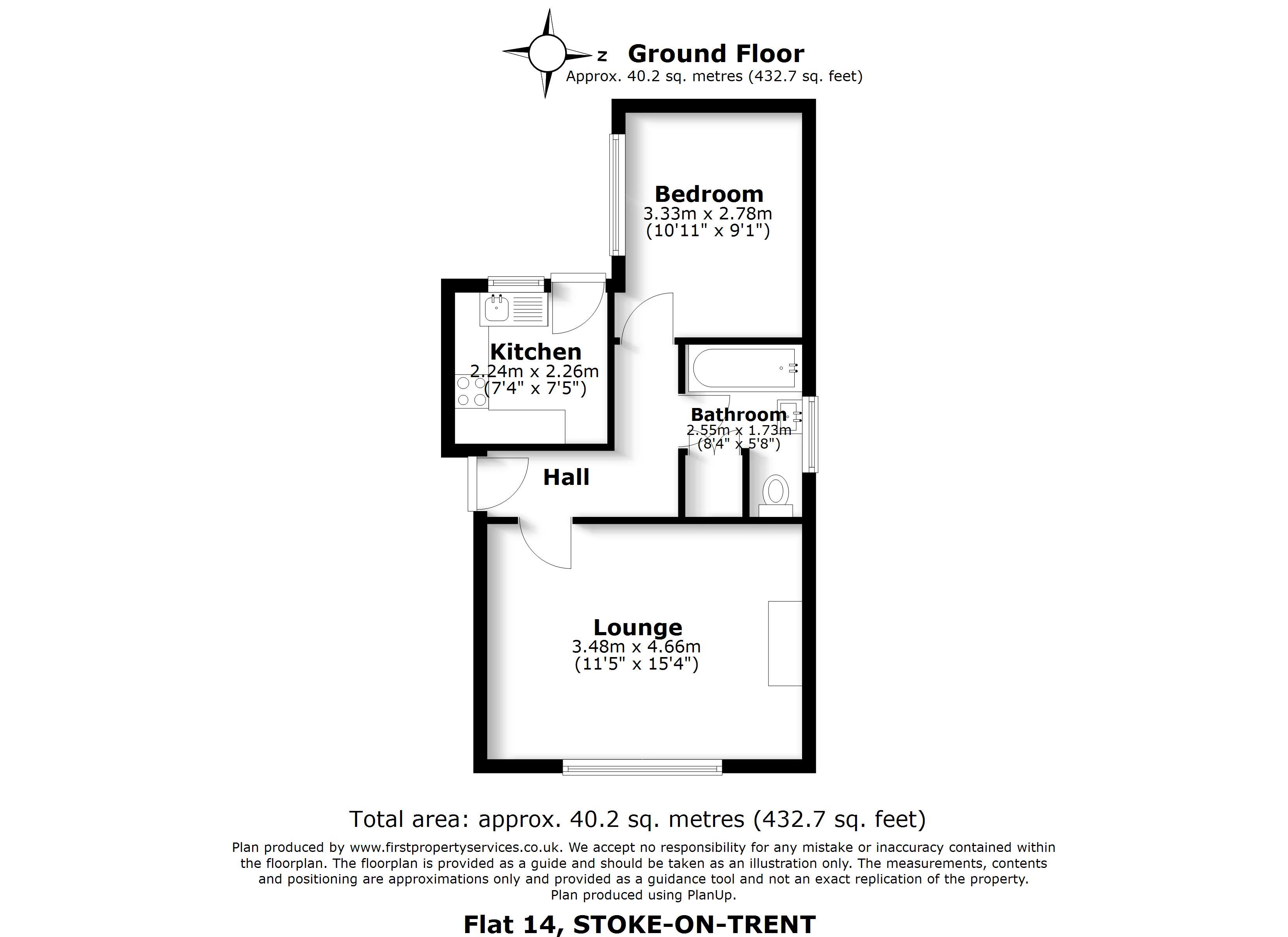 The 1 BEDROOM Apartment has Hallway, lounge, Kitchen, bathroom, bedroom.