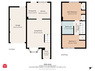 To the first floor there are two bedrooms (one double and one single) and a family bathroom/WC.