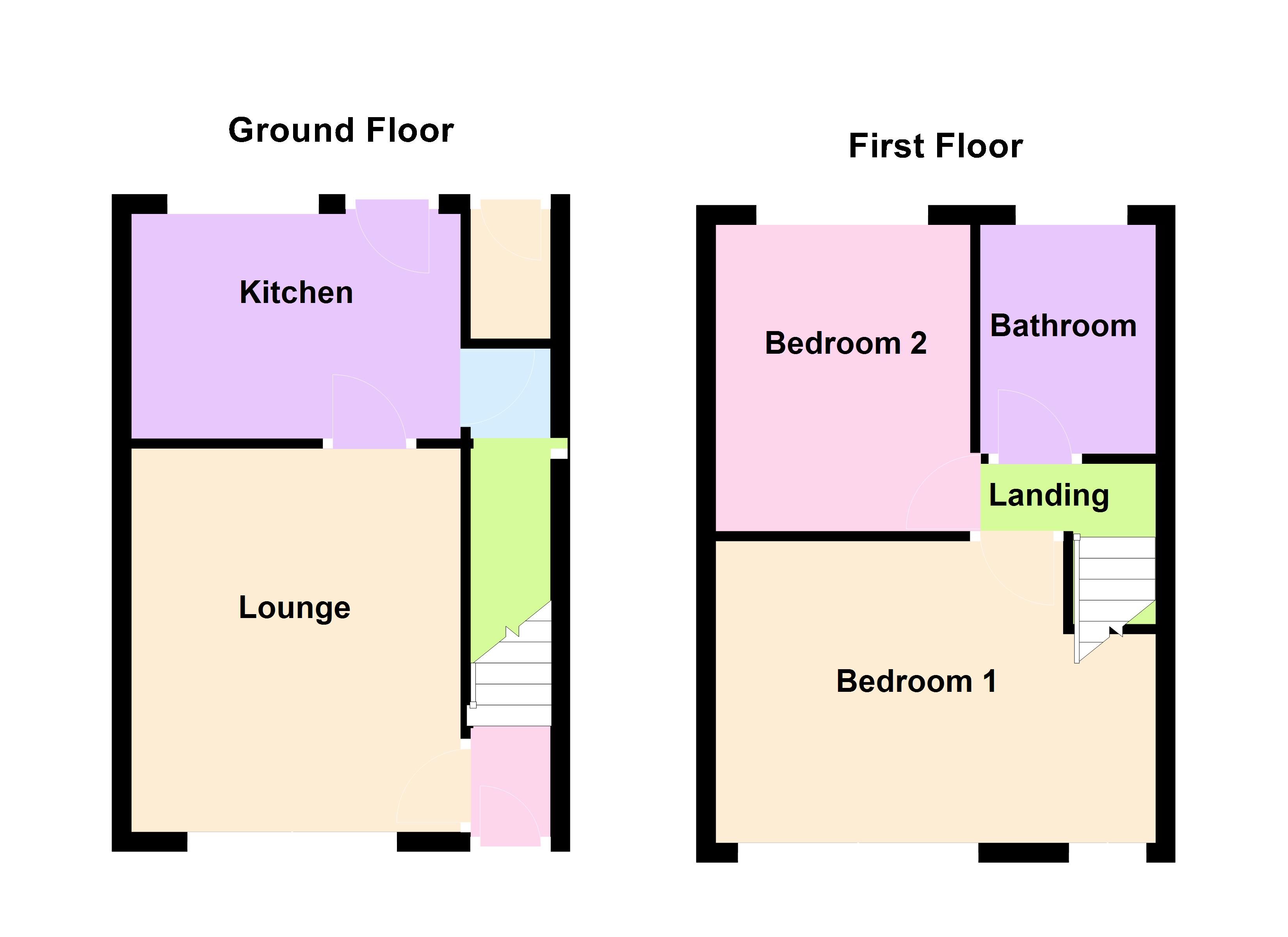 Ground Floor Front Door to Reception Hall with stairs off, Lounge 3.9m x 3.8m, Kitchen 3.8m x 2.3m with door to outside and walk in pantry.