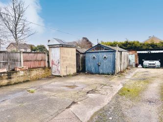 Outside - The property has a small front garden and a shared driveway leads to a parking area with garage, and an range of useful outbuildings, offering scope to rearrange into parking and a garden area if desired.