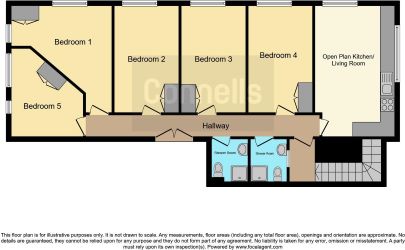 Accommodation Entrance hall, Living Kitchen 5.44m x 3.31m, Bedroom 13.86m x 3.03m, Bedroom 2 4.45m x 4.00m, Bedroom 3, 4.45m x 2.66m, Bedroom 4 4.45m x 2.68m, Bedroom 5 4.45m x 2.68m. Two shower rooms.