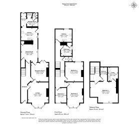The ground floor comprises three reception rooms and a fitted kitchen. Large windows provide natural light throughout.