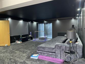 Ground Floor Entrance Hall, open plan kitchen and sitting room with dining area, three bedrooms (one bedroom currently used as a further sitting room, separate cloakroom, utility and cinema room. Area suitable for a home gym and internal door into double garage.