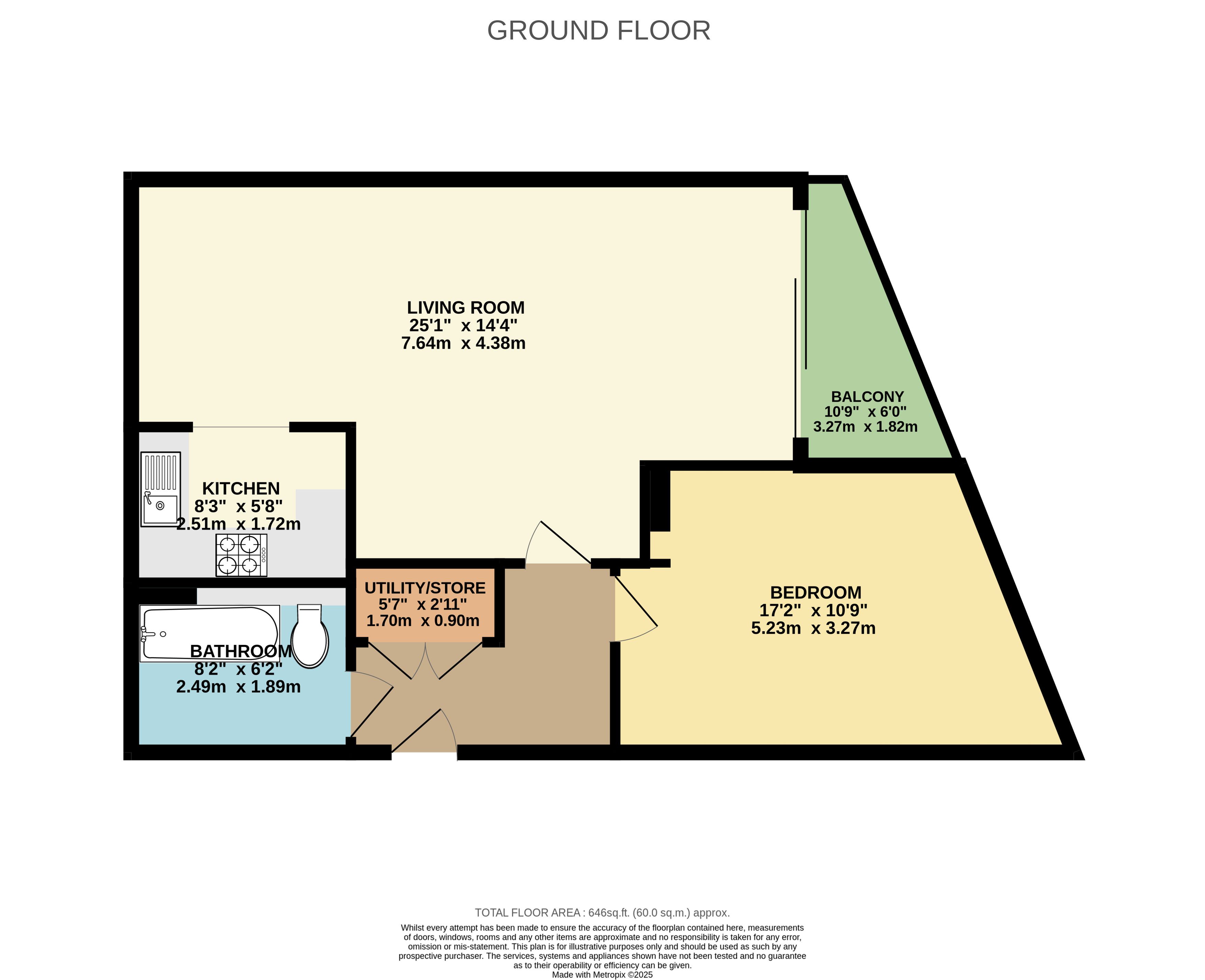 Comprising of an entrance hallway leading to a bathroom, storage cupboard, bedroom, an open lounge diner, kitchen, and a balcony.