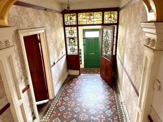 Ground Floor Front door leads to Enclosed Porch with door into delightful Reception Hall with stained glass doors and windows and Minton tiled floor with stairs off and access to Cellar and doors off to:- Lounge 4.4m x 4.6m with bay window to front and feature fireplace, Dining Room 4.4m x 4.2m with bay window to side and French doors to rear garden, Inner Hallway with storage cupboards, door to outside and access to Breakfast Room 3.6m x 3.6m leading into Kitchen 4m x 2.5m, door leads to Rear Lobby with access to Utiliity Room 3.6m x 1.9m and w.c.