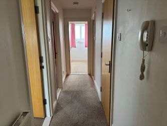 A two-bedroom apartment on the second floor of this purpose-built block. The accommodation comprises, two bedrooms, a living room, a kitchen and a bathroom.