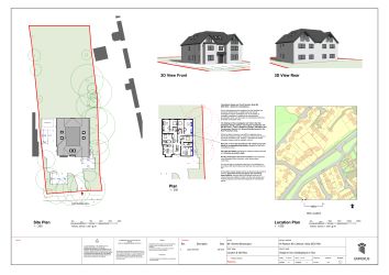 The property is approached via a sweeping driveway and a detached double garage to the side. To the rear of the property is a very large lawn. The example plans