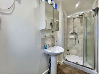 The first floor features a self-contained one-bedroom apartment complete with a modern shower room and spacious lounge area, providing additional rental potential or accommodation for an owner-occupier.