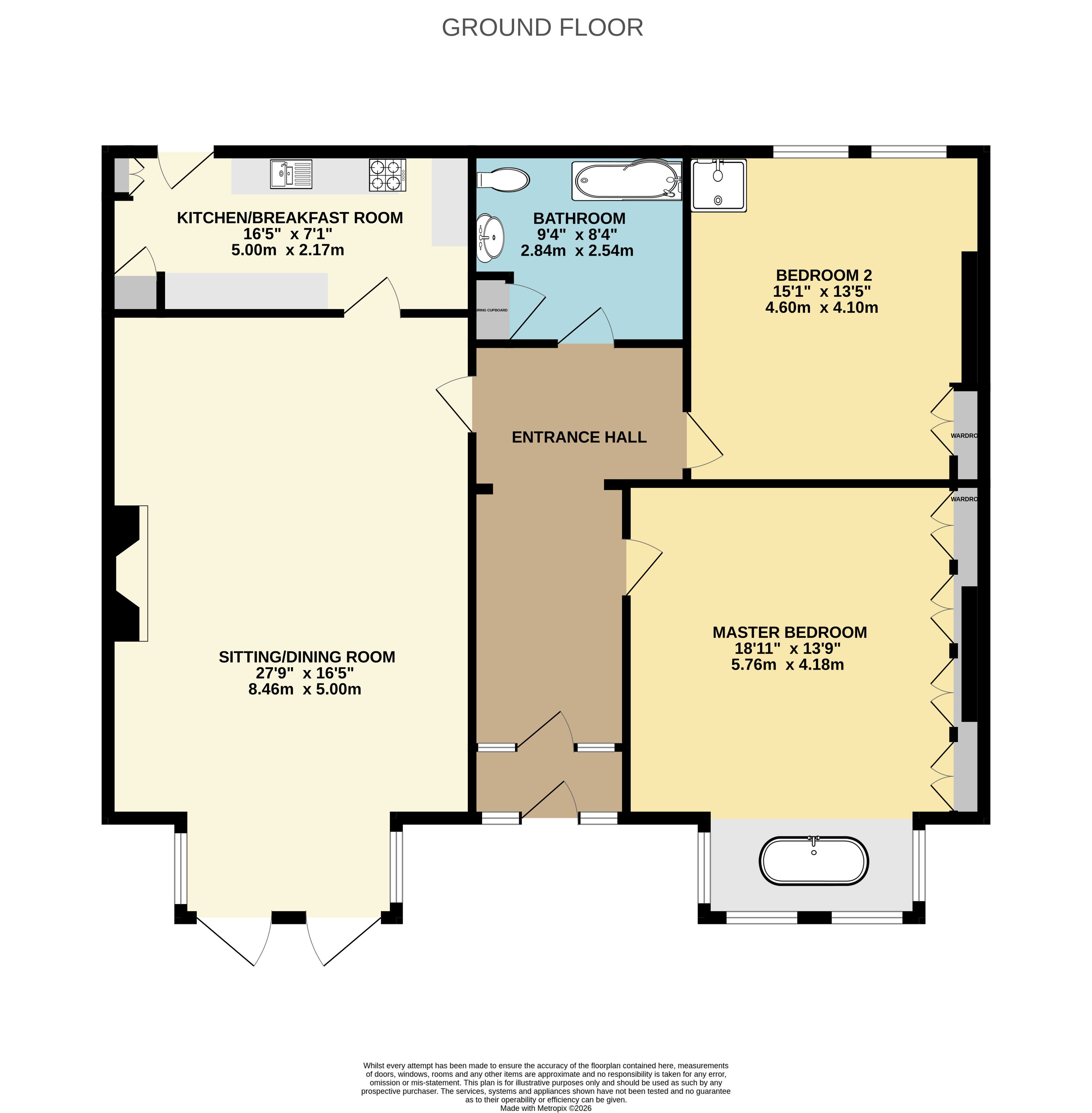 Bedroom 1 – 18'11" × 13'9" (5.76m × 4.18m)