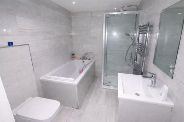 The bathroom is fitted with a bath, separate shower, wash hand basin and WC