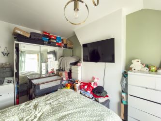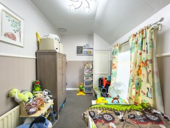 To the first floor there are two bedrooms, including a generously sized main bedroom and a second bedroom suitable for use as a child’s room, guest room or home office.