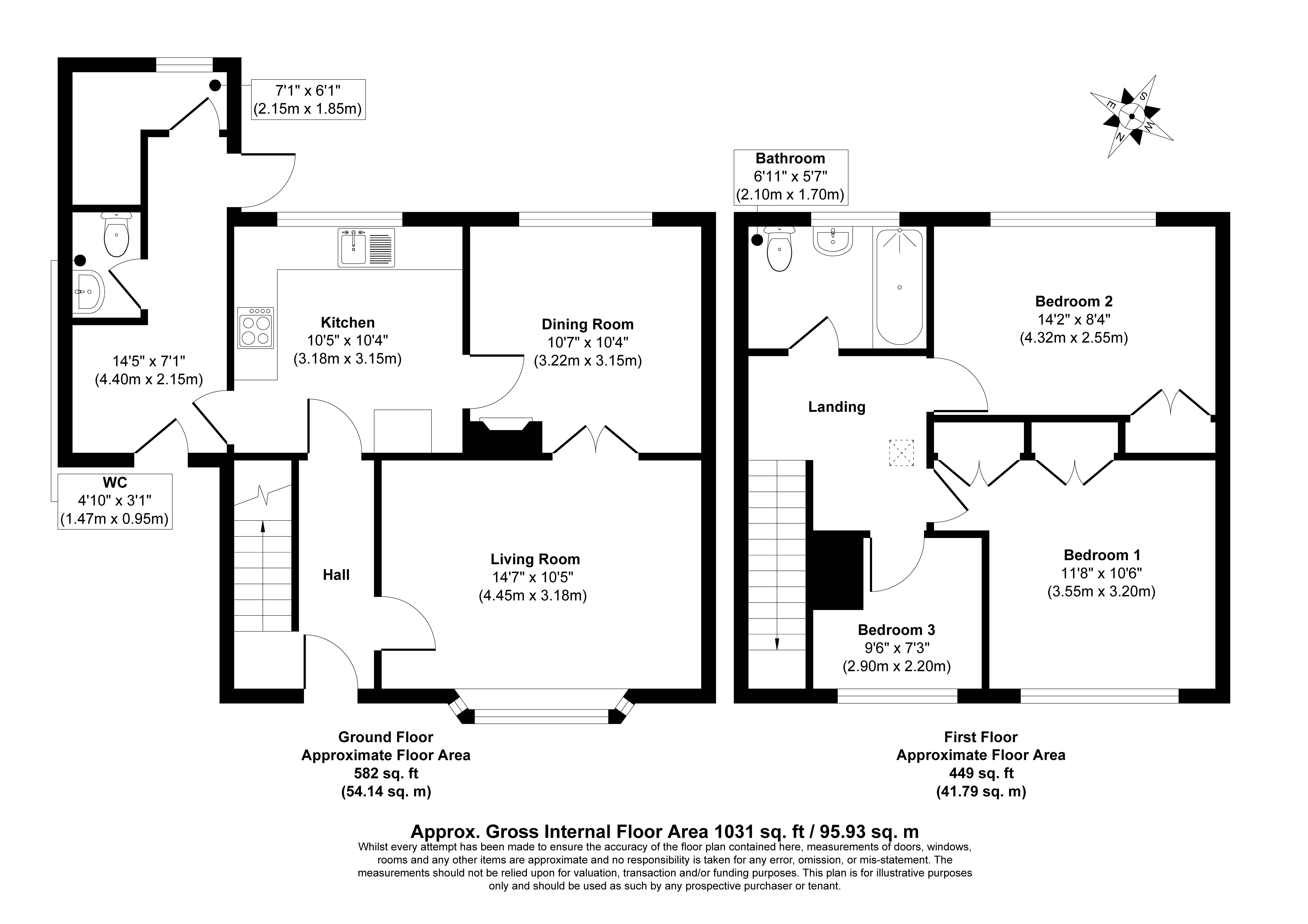 First Floor Three bedrooms, bathroom