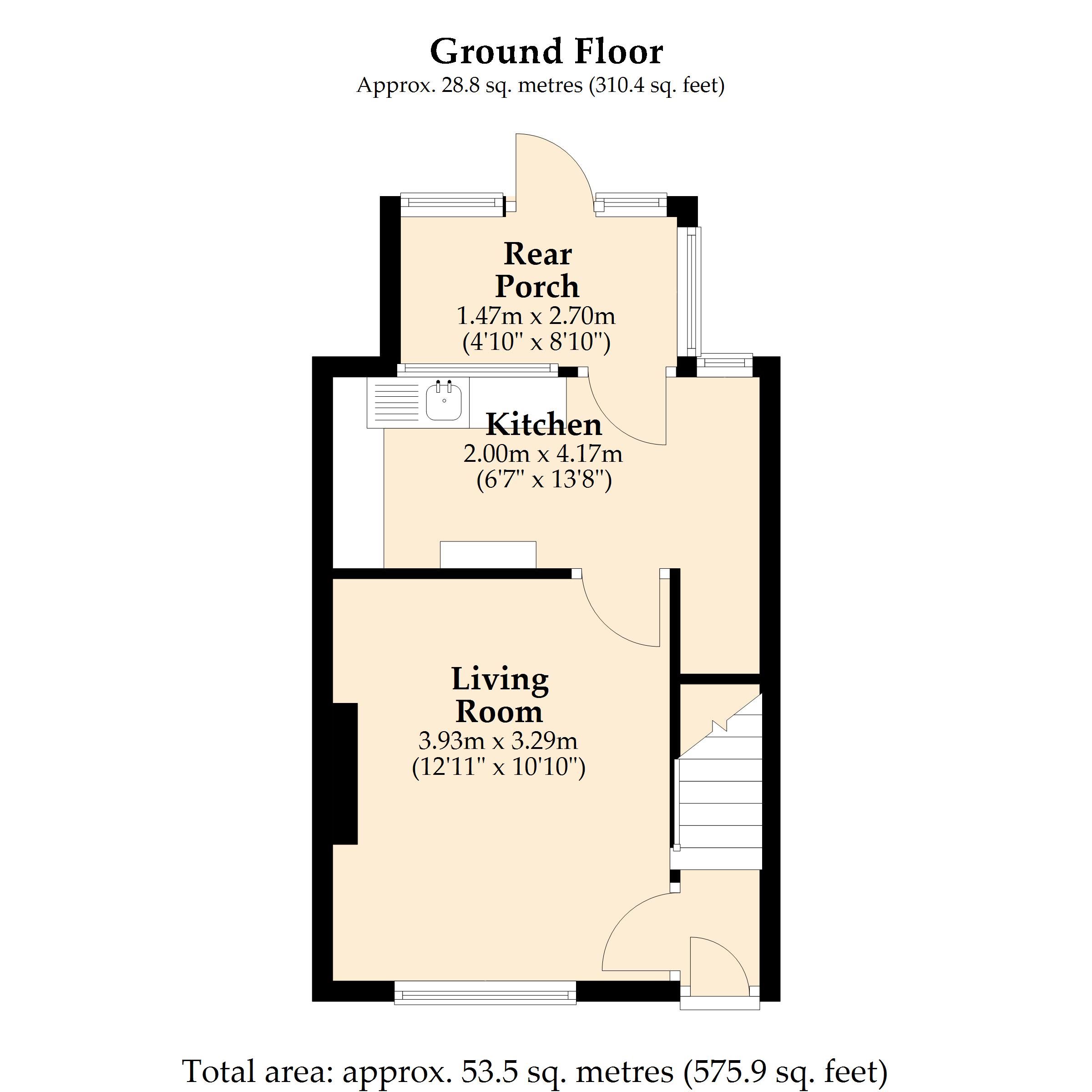 Rear Porch - 4'10" x 8'10" (1.47m x 2.70m)
